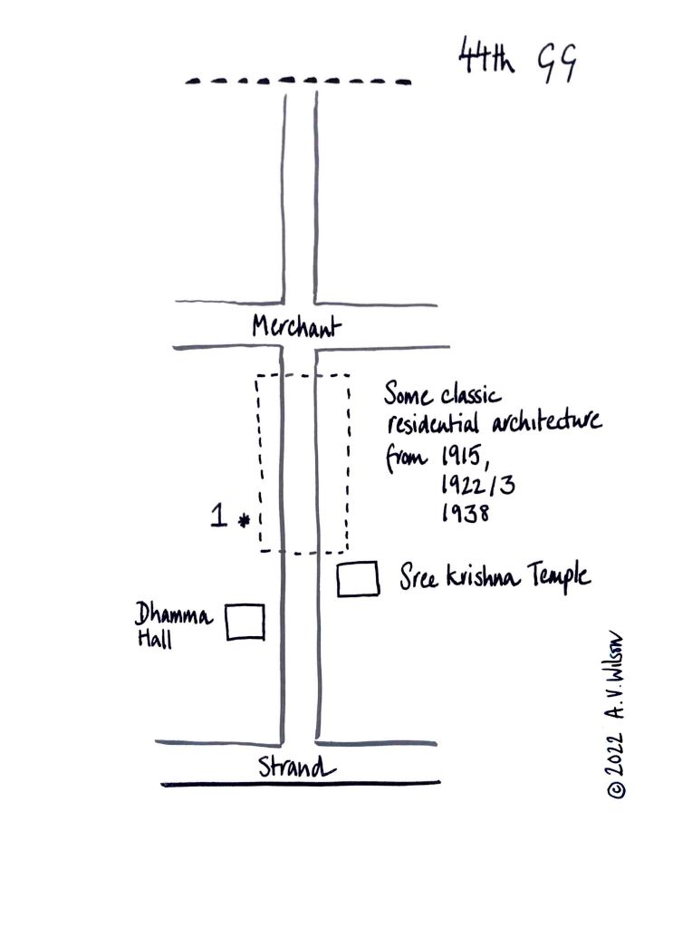 A very short street – just a block and a half. The lower block is good for the study of classic residential architecture from the first half of the 20th century – and it has a fabulous educational supply store – full of craft materials, toys, puzzles and books (see *1).
