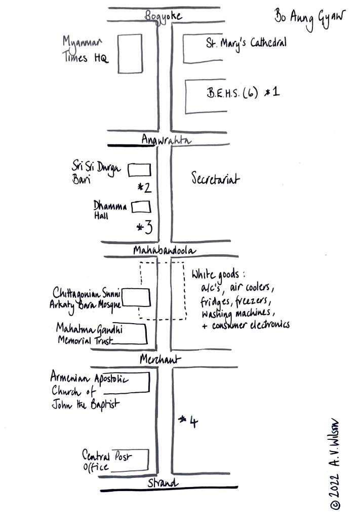 This entire road has been given a Blue Plaque by Yangon Heritage Trust so you know it is interesting. It has some of the most well-known Yangon buildings: not only the iconic Secretariat, but also two churches, one Hindu temple, one mosque, and two newspaper buildings. From a shopping perspective it is mostly large household appliances and consumer electronics.