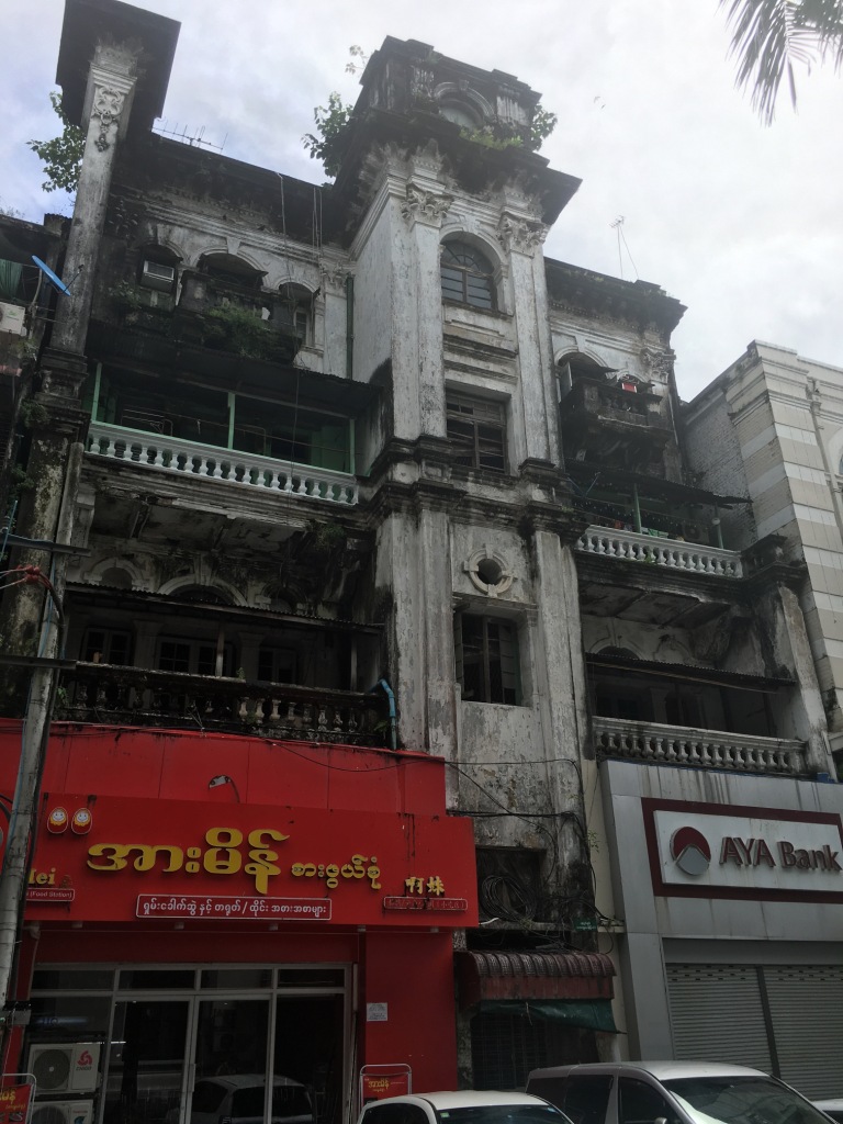 *3 This building is now the AYA Bank main branch, but once upon a time it was “Rowe & Co”, the swankiest department store in South East Asia. The building is a Blue Plaque building thanks to Yangon Heritage Trust, like the City Hall and Mahabandoola Park itself, and the New Law Courts (see http://www.yangonheritagetrust.org). The old apartment building next door could do with sharing some of the love lavished on the AYA bank building.