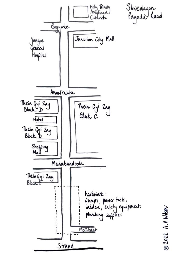 Despite its importance as the main road to the Shwedagon Pagoda, this is not a stately or beautiful avenue. It does, however, have the Holy Trinity Anglican Church – inscribed on the Yangon Heritage list.