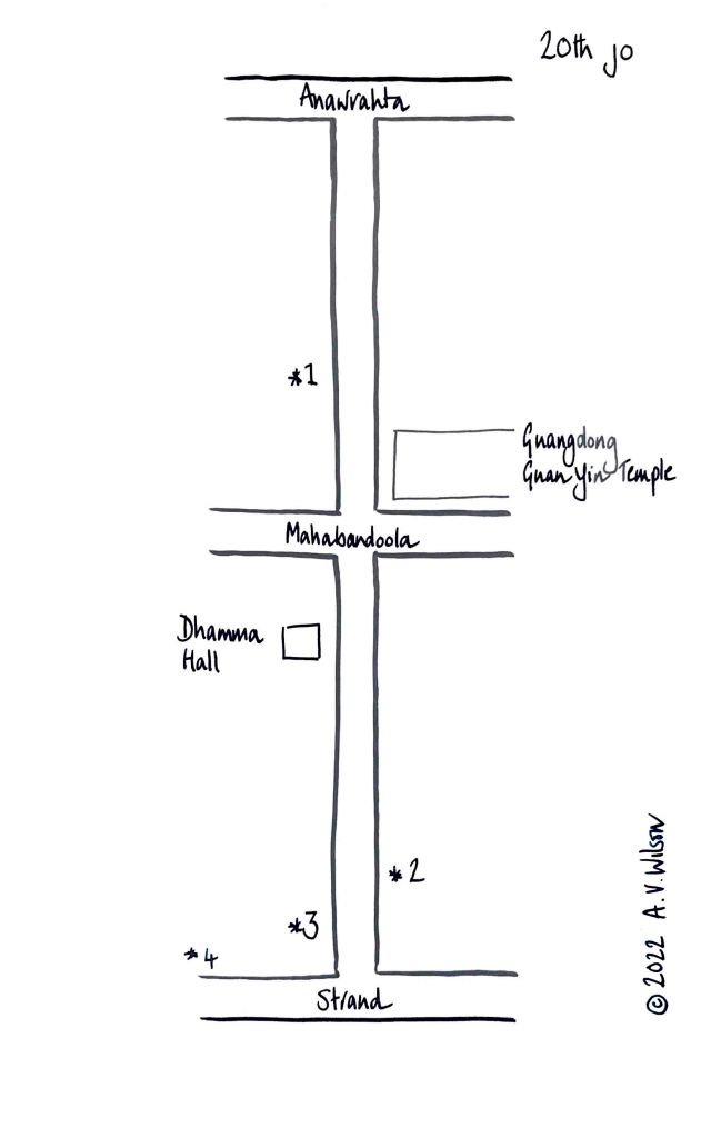 A mostly residential street with a few clan houses and a beautiful temple.