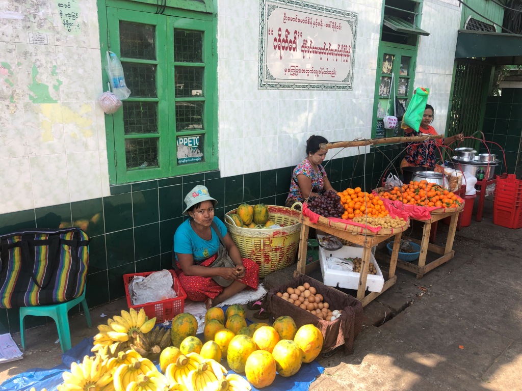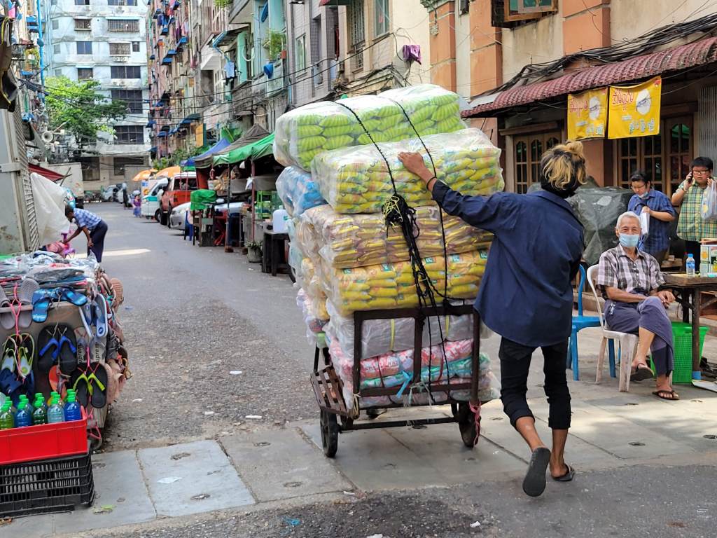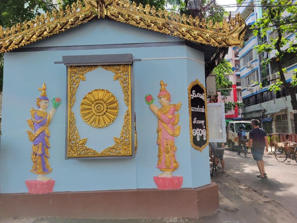 The lower half is mostly small wholesale shops for drinks, including beer, and dry food. The street ends abruptly in the Nyaung Pin Lay Zay, which is a private wholesale market – turn left to get to Lanmadaw Road as the small delivery alley that takes you to Strand Road is not very scenic!